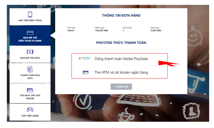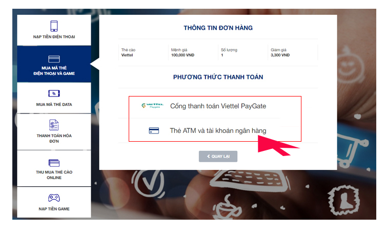Trước tiên, để sử dụng dịch vụ nhanh chóng, Quý khách cần có thẻ ATM của ngân hàng hoặc tài khoản Viettel PayGate. Đối với thẻ ATM, Quý khách vui lòng liên hệ Ngân hàng để được đăng ký internet banking và thanh toán trực tuyến nếu tài khoản của Quý khách chưa có dịch vụ này.