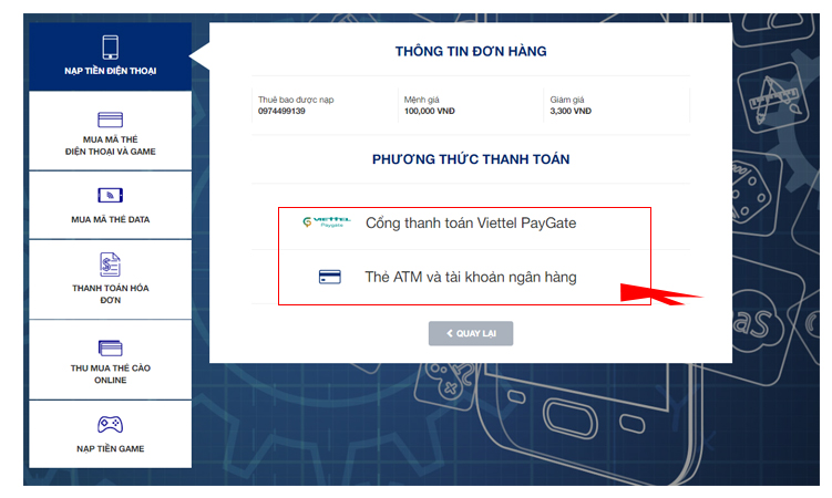 Trước tiên, để sử dụng dịch vụ nhanh chóng Quý khách cần có thẻ ATM của ngần hàng hoặc tài khoản Viettel PayGate. Đối với thẻ ATM, Quý khách vui lòng liên hệ Ngân hàng để được đăng ký internet banking và thanh toán trực tuyến nếu tài khoản của Quý khách chưa có dịch vụ này.